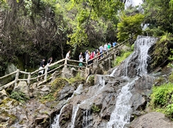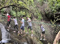上午,大家一起沿着峡谷逆流而上,边玩水边漫步,两侧峰峦竞秀,岩石嶙峋,溪水清凉,奔流而下,发出响亮的淙淙声……置身清凉的森林溪水间,恼人的暑气即刻就被赶走了。走在凌空于绝壁的玻璃桥上,有一种踏云而行的快感,与孩子一起感受玻璃滑道,享受快乐的亲子时光。